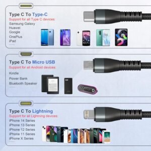 - MFi Certified 100W 3M/10FT Multi Head Charging Cable