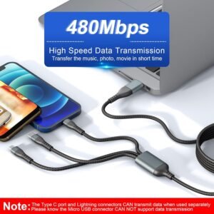 - Only type c and Lightning heads of this cable can transmit data when used separately;