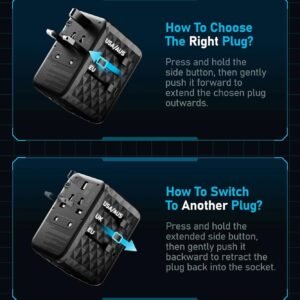 The Travel Mate universal travel adapter is a must-have for any global traveler. With its smart design that allows switching between US, AU, EU, and UK plugs with just a button push, it ensures you stay connected without the hassle of carrying extra adapters. Powered by a universal socket capable of 2500W, Travel Mate can charge anything from hair dryers to laptops. Whether you’re plugging in across North America or Europe, its powerful yet compact design means your devices will never miss a beat. Light enough to pack in any bag but strong enough to handle high-wattage appliances, Travel Mate gives the mobile professional or jet-setting vacationer the freedom to work and play anywhere in the world.