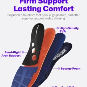 Firm Support, Lasting Comfort | Arch Support Insoles for Plantar Fasciitis, Forefoot Pain, Flat Feet, Heel Pain and Ankle Sprains