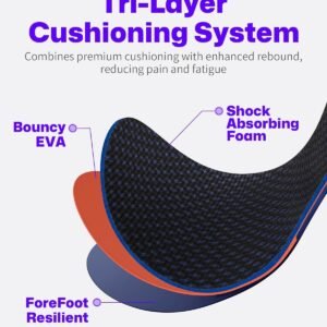 ForeFoot EVA Cushioning: Targeted cushioning to specific pressure points in forefoot, relieve fatigue and soreness in the ball of the foot, helping address metatarsalgia, Morton’s neuroma.